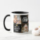 Uma caneca de presente de graduação personalizada com fundo preto na moda, 5 fotos do formando, brilho falsa do ouro, boné acadêmico, citações modernas de formando, ano de aula, nome e escola ou universidade.