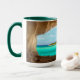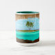 Esta foto mostra uma velha caverna indiana localizada em uma remota ilha de Caribe, olhando para o belo Caribe do mar brilhando e a luz do sol quente balançando algumas palmeiras de coco remotas em uma ilha deserta.