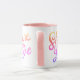 A caneca Café apresenta a frase 'Compartilhar o Amor' em um script de gradiente rosa.