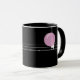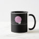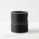 Caneca de café de pombo-Quirky apresentando duas aves engraçadas em um fio preso a varas de bublegum mastigado. Um pássaro soprando uma grande bolha rosa, outro pássaro pisando em chiclete. Use o modelo de texto fácil para adicionar um nome, um monograma, iniciais ou um ditado engraçado. Edite para alterar o fundo preto para qualquer cor que desejar. ♡ Idyllfire
