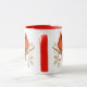 Esta caneca de passarinho cardinal de Natal apresenta uma ilustração digital em aquarela. A obra de arte retrata cardinais empoleirados em um galho durante a estação do inverno, complementada por bagas vermelhas. Uma opção de saudação personalizável permite uma expressão personalizada. Esta caneca de duas cores, vermelha e branca, serve como um presente atencioso para qualquer entusiasta de pássaros. A obra de arte foi projetada por Susang6 usando uma ferramenta de IA.