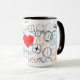 Passport Stamps Viagem Design Mug, com texto personalizável em vermelho.