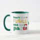 Massagista não sopra uma caneca monográfica FUSILLI Itália, projetada com a palavra FUSILLI feita de massas fusilli. O texto é criado nas cores da bandeira italiana - verde, branca e vermelha - e lê-se NÃO BLOW A FUSILLI COME MAIS PASTA. Você pode PERSONALIZAR o texto do meio adicionando suas iniciais (ou excluir). Uma caneca de macarrão engraçada e leve para dizer a todos o quanto você ama macarrão. Isso seria um presente excelente para eletricistas que amam massas, ou para acalmar amigos muito excitantes! Especialmente para o Dia Mundial da Massa em outubro.