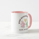 Caneca Pastel rosa e coelhos verdes com personagem cardía