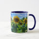 Esta caneca floral mostra minha fotografia original de uma fileira de girassóis com um céu azul nublado. Eu processei minha fotografia com um estilo de pintura de óleo pastel ou um talento artístico. O cabo e dentro do copo são azuis para complementar o trabalho de arte. Estas são canecas de 11 onças, do tamanho perfeito para o café ou chá da sua casa - ou até chocolate quente! Ele faria um presente de excelente e você poderia colocar pacotes de café, bolsas de chá ou dentro de chocolate quente. Uma outra ideia de presente é colocar uma pequena planta nela para torná-la mais especial para o seu amado. Um presente de excelente para um amante da natureza ou amante da flor.