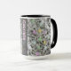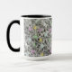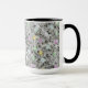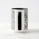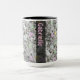 Foto delicada da textura branca da rocha do granito com os pontos pastel digital adicionados. A foto cobre a maior parte desta caneca. Oposto do punho, há uma bandeira conhecida vertical semitransparent. A bandeira é preta, e o texto é - as cinzas a se iluminar - marrom claro.