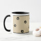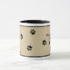 Caneca personalizada para amantes de cachorros. "Patas fora da minha CANECA" em texto preto. A caneca é coberta com impressões de patas pretas aleatórias. O design é para destros. A lista também está disponível para canhotos. A cor do fundo é marrom claro, mas pode ser personalizada na ferramenta de design para a cor de sua escolha. A cor do texto é preta e também pode ser personalizada na ferramenta de design para a cor de sua escolha. Envie um e-mail para beachpausedesigns@gmail.com para perguntas ou assistência com este design.