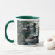 Esta caneca atrativa caracteriza quatro patos selvagens em uma lagoa cintilante. Esta caneca original é o presente perfeito para qualquer um que aprecia animais selvagens.