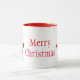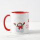 A caneca de café cerâmica é mostrada com um impressão de arte de boneco de neve de Natal festivo, com o texto Feliz Natal. Impressão de boneco de neve nos dois lados da caneca. Personalize este item ou comprar como está.