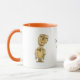 Gespenst eines Genies (Ghost of a Genius) abstract by Swiss-born German artist Paul Klee. Genius looks good on this orange trim coffee mug (other trim colors available). Has phrase: "I'm feeling a bit off today." in grey text opposite handle and ready to personalize if desired. Makes a great gift for a co-worker or boss!
