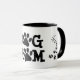 As pinturas de cão com texto de "mãe de cão" com um padrão de bolinhas preto e branco. A cor de fundo pode ser alterada.