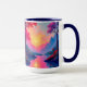 Bring a moment of profound peace and vibrant color to your morning coffee or evening tea ritual with this beautifully designed ceramic drinkware. This large mug features a wrap-around illustration of a breathtaking, serene fantasy landscape. The glowing sunset over a calm river, framed by rich magenta trees and distant mountains, provides a deeply relaxing visual start to your day. The spacious sky area serves as the perfect natural template for you to easily add a monogram, a motivational morning quote, or your name.