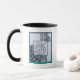 Caneca Peacock & Leaf Blk & Whit Ink Turquoise Border.