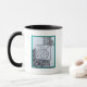 Caneca Peacock & Leaf Blk & Whit Ink Turquoise Border Mug