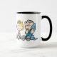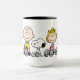 Veja Lucy, Charlie Brown, Snoopy, Sally e Linus sentados juntos.