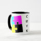 Na moda CMYK Jigsera Peças Café Mug com TEXTO PERSONALIZÁVEL para designers gráficos, impressoras pré-impressoras, editores, estudantes de arte, etc. que também adoram quebra-cabeça e café. Design mostra quatro quebra-cabeça em cores CMYK de ciano, magenta, amarelo e preto (chave). A design desta caneca CMYK é repetida na frente e no verso, e no meio as letras são lidas como CMYK em uma linha vertical. Estas letras podem ser substituídas por suas iniciais (até 4). Um pouco diferente da sua caneca de café CMYK média!