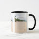 Esta caneca mostra o poema das pegadas sobre pegadas no fundo da pintura de areia na praia. A jante e o manípulo são vidrados em cores compatíveis, disponíveis em micro-ondas e máquinas de lavar louça de tamanho 11 onças ou 15 onças, construindo cerâmica segura.