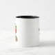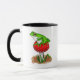 Arte sapo desenhada pela mão. sapo verde em um cogumelo vermelho branco. Na parte de trás da caneca de café diz, "Traga o Sapo com ele" mas você pode editar esse texto ou removê-lo.