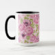 Padrão sem costura feito de peões cor-de-rosa e flores de anêmona violeta pintadas com aquarelas.