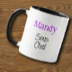 Uma caneca adorável para o pequeno Chef Sous na sua vida. Totalmente personalizável. Altere o nome, as cores (até a cor de chapéu), a fonte e a citação. Basta clicar em "Editar Design" no objeto que você deseja alterar e trocar a cor por qualquer cor HEX que você escolher. presente de excelente para Natal, aniversários, netos ou comemorações familiares. Veja na minha loja mais seleções em Gato Sassy e Rato Pequeno e personalize uma caneca diferente para todos na família.