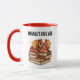 Diese personalisierbare Book Hoarder Tasse mit einem Drachen, der auf einem Bücherstapel schläft, ist perfekt für alle Bücherliebhaber und Drachenfans.