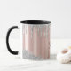 Caneca Personalizada Moderna Elegante Rosa Dourado com Brilho Prata Cinza para Profissionais de Maquiagem, Especialistas em Extensão de Cílios, Profissionais de Beleza e Garotas Glamurosas e Descoladas! Este modelo de caneca luxuosa apresenta folha metálica falsa rosa dourada e rosa bege sob brilho cintilante. Detalhes pretos personalizáveis e imagem de fundo personalizada.