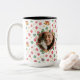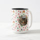 Celebre a temporada de festas com esta adorável Caneca de Natal com Foto Personalizada do seu Animal de Estimação. Esta caneca bicolor foi especialmente criada para os amantes de animais, apresentando um padrão caprichoso de pegadas de patas vermelhas, douradas e verdes, estrelas, pinhas e sinos de Natal festivos.