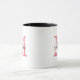 Caneca personalizada com letra conhecida elegante do monograma. Coffeemug monogrammed da campainha do vintage com letras à moda do roteiro. Aniversário bonito ou ideia do presente do favor de partido para homens e mulheres. Copo 11oz à moda com cores cor-de-rosa e pretas corais elegantes. Também disponível como a caneca desproporcionado da extra grande e grande para ir caneca de viagem. O dobro tomou partido drinkware do design para o escritório ou a casa.