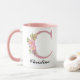Torne cada gole ainda mais especial com esta caneca personalizada de monograma floral rosa, lindamente desenhada com flores silvestres delicadas e uma inicial ou nome personalizado. Suave, feminino e atemporal, esta caneca é um presente personalizado de coração para mulheres e meninas de todas as idades. Perfeita para aniversários, formaturas, Dia das Mães, presentes para novas mães, presentes de agradecimento e propostas para damas de honra, esta caneca floral adiciona um toque pessoal atencioso aos momentos cotidianos de café, chá ou cacau. Se você está presenteando para mamãe, vovó, uma nova mamãe, damas de honra, crianças ou meninas, é um item que elas vão guardar e usar diariamente.