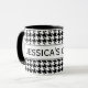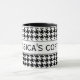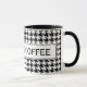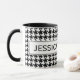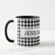 Caneca personalizada com teste padrão bonito do houndstooth. Design elegante com impressão da verificação do dente de cães. Fundo de Dogstooth preto e branco. Ideia bonito do presente para a casa ou o escritório.