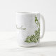 Aproveite seu café matinal com uma caneca de café personalizada Pavão Verde. Mug design apresenta um pavão verde vibrante, uma vinha branca macia contra um fundo de cinza de luz com uma área para personalizar com seu nome. Itens de presentes adicionais disponíveis com este design, bem como uma variedade de cores.