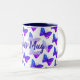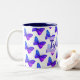 Este as borboletas roxas bonitas projetam em um copo de café podem facilmente ser personalizadas para fazer um presente original. Desenho da aguarela de um inseto bonito.