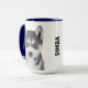 Caneca personalizada para seu Husky Siberiano. Personalizar com a imagem e o nome do seu cão; fontes e cores também podem ser alteradas.