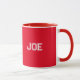 Personalizada com Mug de Estilo Vermelho Combo Personalizada Esta é uma bonito Mug de Estilo Combo Vermelha. A caneca é personalizada com o nome Joe em um esboço branco. O nome está em ambos os lados da caneca. Esta caneca ficaria excelente em sua casa ou escritório. Engraçado, único, bonito, ou pessoal, é a sua escolha para a caneca de café perfeita. Esta caneca na moda vermelha também tem um interior e uma alça de vidro vermelho. Corresponder ou complementar a cor do seu conjunto de dinnerware existente, ou oferecer a seu amigo uma caneca em sua cor favorita. Você conhece alguém que gostaria de uma caneca vermelha? Você pode adicionar o nome da pessoa à caneca com facilidade e dar a ela um presente personalizado de caneca. Estas canecas estão disponíveis em tamanhos de 11 ou 15 onças. As dimensões são de 11 onças: 3,2" D x 3,8" H e 15 onças: 3,4" D x 4,5" H. As canecas bonitas são micro-ondas e máquinas de lavar louça seguras. As canecas são feitas com forte construção cerâmica. Esta caneca atende aos requisitos do FDA para segurança de comidas e bebidas. As canecas são impressas a pedido em Reno, NV. Você pode adicionar seu nome clicando no botão Personalizar e digitando seu nome.