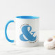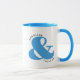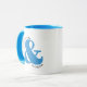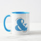Caneca de Café Personalizável Azul e Branco para Casal em fonte moderna, perfeita como presente de aniversário de casamento.