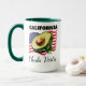 Keep it fresh and West Coast proud with this playful California Combo Mug featuring "California" across the top, set against a waving United States flag. In the forefront, a perfectly cut avocado—seed and all—pays tasty tribute to the Golden State’s most famous green gem. It’s a sunny slice of California culture, blending laid-back vibes, healthy living, and a little foodie flair. Perfect for avocado lovers, brunch enthusiasts, and anyone who believes life’s better with a little guac on the side. Customizable for your city, zip code, neighborhood, or even your name! Design can be moved or duplicated to the opposite side. Popular shows and movies dedicated to California include Fast Times at Ridgemont High, Entourage, Point Break, The O.C., Beverly Hills 90210 and Gidget.