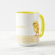 This customizable mug features a playful yellow chick standing on an yellow checkered base. Add any name to create a unique gift or personal keepsake. Perfect for animal lovers, rustic kitchens, or anyone who enjoys cheerful, farm-inspired designs. Ideal for birthdays, everyday use, or cottagecore collections. The clean layout and warm colors make it a charming addition to any drinkware set. Personalize it now and bring a touch of countryside joy to your daily routine.