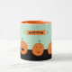 Creative Halloween party mugs or gifts featuring funny Jack-o'-lantern pumpkins. To personalize edit text to add her or his name.