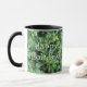 Festive "Happy Holidays" Holly Berry pattern mug design features a lush, close-up pattern of vibrant glossy green holly leaves dotted with bright red berries, instantly bringing a classic Christmas look to any celebration. Ideal for hot cocoa and holiday parties, or Christmas gatherings, and relaxing Christmas mornings.