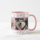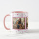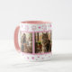 Sip your morning coffee or tea and remember your beloved furry friends with this charming mug. Designed especially for pet lovers, this cup allows you to proudly display three of your favorite pet photos in attractive pink-bordered frames. The white mug features a delightful pattern of pastel pink paw prints and tiny hearts around the rim and base, plus a matching pink handle and interior. Whether you're a dog parent, cat owner, or both, this mug is a heartwarming way to keep your companions close. It's the perfect personalized gift for birthdays, Mother's Day, or just because you love your pets!