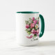 Add a personal touch to your daily coffee routine with this beautiful personalized tulip floral mug. Featuring a delicate bouquet of pink and white tulips tied with a soft ribbon, this design is customized with your name for a unique and meaningful gift.