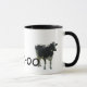 Caneca pessoal branca preta legal do bebendo das vacas de leiteria que diz "MOO-oo". Inteiramente customizável e Personalizable! Mude o texto "MOO" se você quer a seu nome ou a alguma outra pessoa. Adicione mais texto e imagens se você quer! Peça em linha e personalize seu próprio grande presente da caneca da vaca para pôr em suas bebidas! Excelente para em casa e no escritório.
