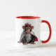 Ce bébé singe a l'air sérieux et prêt pour l'aventure. Il porte un costume bleu avec un symbole de héros sur la poitrine et une grande cape qui flotte derrière lui. Son regard intelligent et ses grands yeux curieux lui donnent une expression unique. Son pelage noir et doux contraste avec sa tenue de super-héros, ce qui le rend encore plus impressionnant. On dirait qu'il est prêt à sauver le monde avec ses super-pouvoirs.