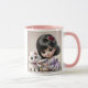 une petite fille au regard attendrissant et au sourire délicat, jouant avec son chat blanc à la fourrure soyeuse et aux grands yeux brillants. Elle est habillée d’une élégante robe violette aux manches bouffantes, agrémentée de dentelle fine et d’un joli nœud à l’arrière, qui souligne son style raffiné et enchanteur. Ses cheveux noirs soigneusement coiffés sont ornés d’un délicat accessoire floral avec des roses rouges et des feuilles dorées, ajoutant une touche poétique et vintage à son apparence. Son chat, tout aussi charmant, porte un petit nœud assorti autour du cou, renforçant l’harmonie des couleurs et l’ambiance chaleureuse de la scène. L’univers doux, les teintes pastel et les détails soignés en font une illustration idéale pour un décor inspiré du monde des poupées de collection et du style kawaii.
