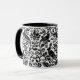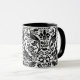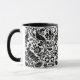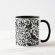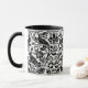 Mug em um William Morris, design de papel de parede Art Nouveau de faisões e lebres entre folhas, vinha e flores - Preto sobre fundo branco sutilmente texturizado