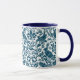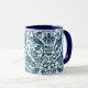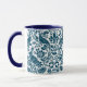 Mug em um William Morris, design de papel de parede Art Nouveau de faisões e lebres colocados entre folhas, videiras e flores - escuro Indigo / marinho azul sobre fundo branco
