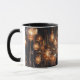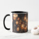 Pintura de anime detalhada de uma linda jovem vagando reverentemente por uma sala escura cheia de lanternas suspensas.