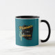 The coffee mug design saying "1881," "Phoenix" and "Valley of the Sun" is colored blue green. It makes it ideal for either coffee or tea in the mornings. It is microwave and dishwasher safe.