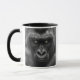 Une photo portrait en noir et blanc d'un gorille révèle une expression intense et menaçante. Le regard perçant de l'animal, avec ses yeux clairs et brillants, semble transpercer l'objectif, ajoutant une dimension presque surnaturelle à l'image. La texture de la peau du gorille et les détails de ses traits marqués ressortent magnifiquement grâce à l'éclairage subtil et aux ombres. Quelques éclats de lumière dans l'arrière-plan flouté ajoutent un effet dramatique à la scène, renforçant l'impression de puissance brute et de majesté de cet animal impressionnant. Ce portrait est un hommage à la force et à l'élégance de la faune sauvage.