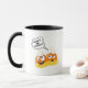 Este design de Milho doce de Halloween apresenta um milho doce dizendo ao outro "Não seja magricela" enquanto fazer um rosto de bobo. Aproveite a sua bebida quente favorita na temporada de outono com esta caneca de Halloween fofa.